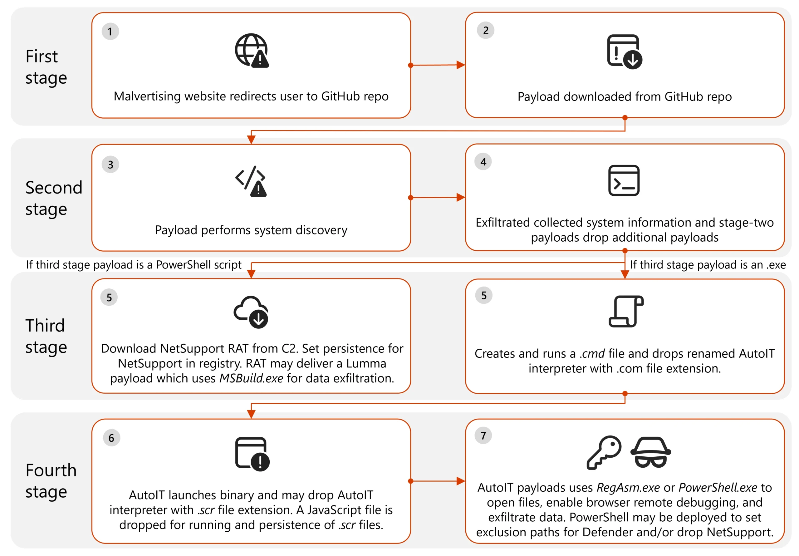 Chiến dịch bắt đầu vào tháng 12, khi những kẻ tấn công, vẫn chưa được biết đến, đã gieo mầm các trang web có liên kết tải xuống quảng cáo từ các máy chủ độc hại. Các liên kết dẫn các máy được nhắm mục tiêu thông qua một số trang web trung gian cho đến khi cuối cùng đến các kho lưu trữ trên GitHub thuộc sở hữu của Microsoft, nơi lưu trữ một loạt tệp độc hại.